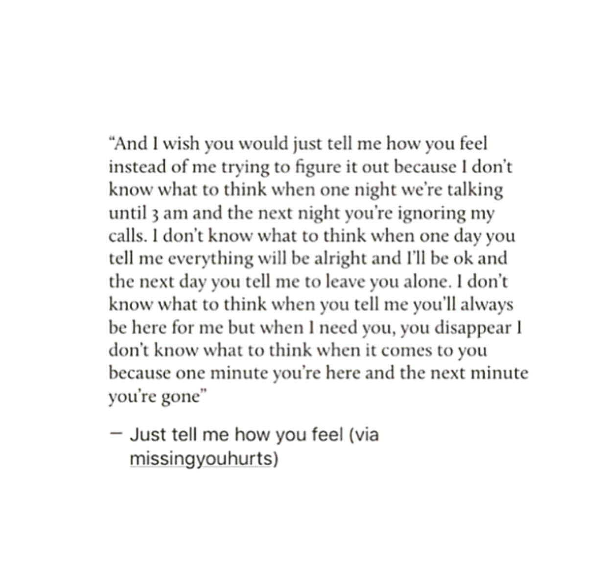 Why can’t you just tell me what you feel, because how you act is